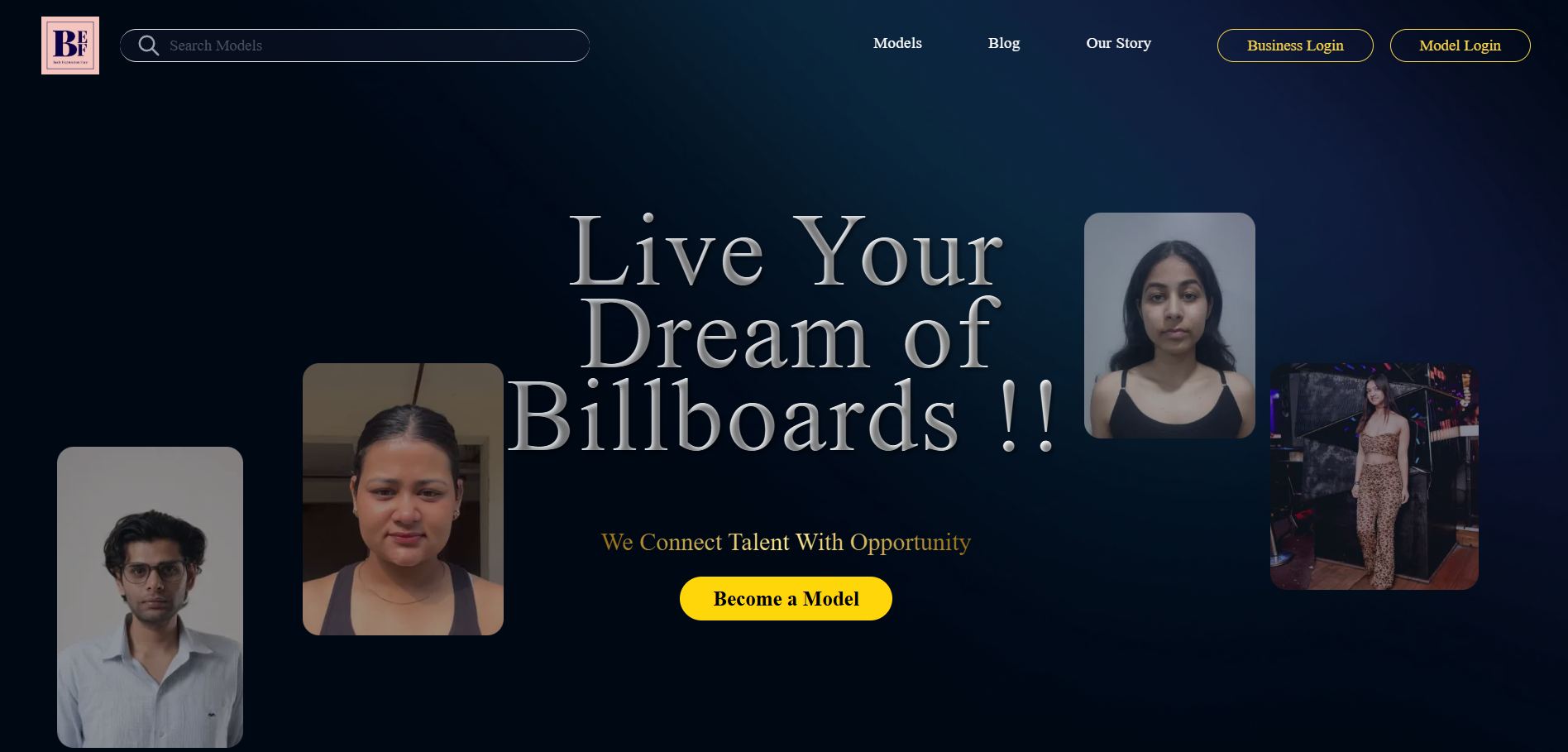 Web DevelopmentA modern modeling platform that connects aspiring models with brands, offering portfolio creation, verified casting opportunities, and industry networking.