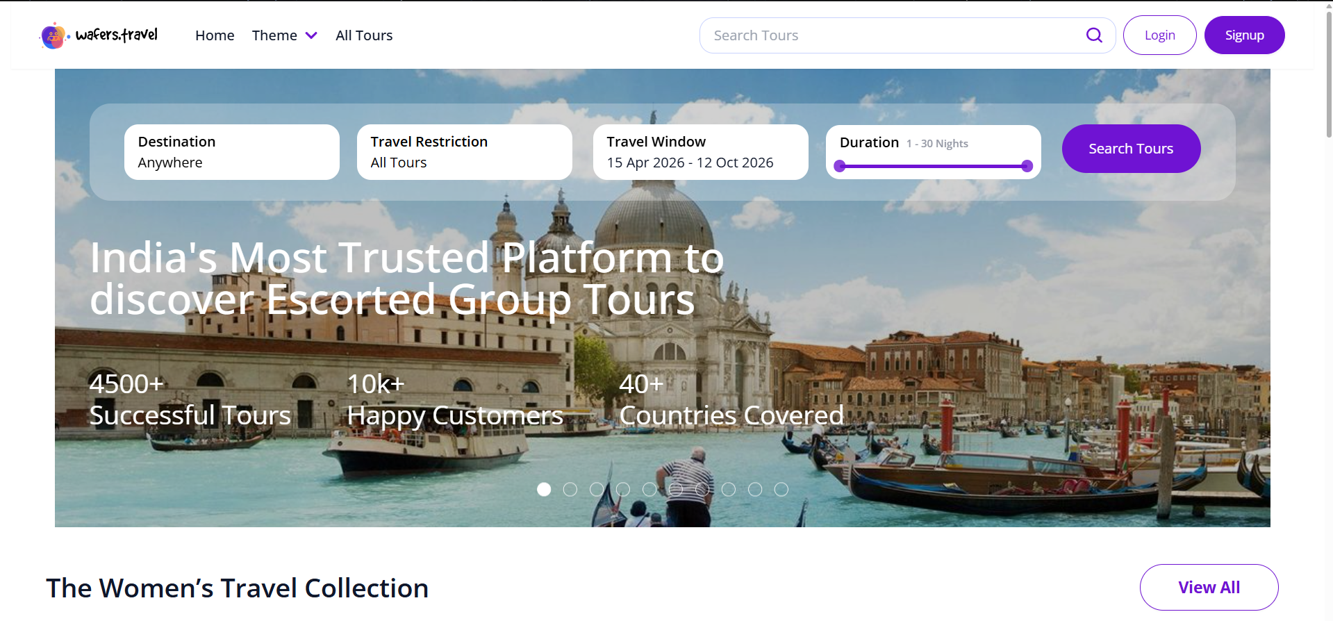 Web DevelopmentA curated travel platform that helps users discover and compare group tours tailored to solo travelers, couples, and groups for seamless trip planning.